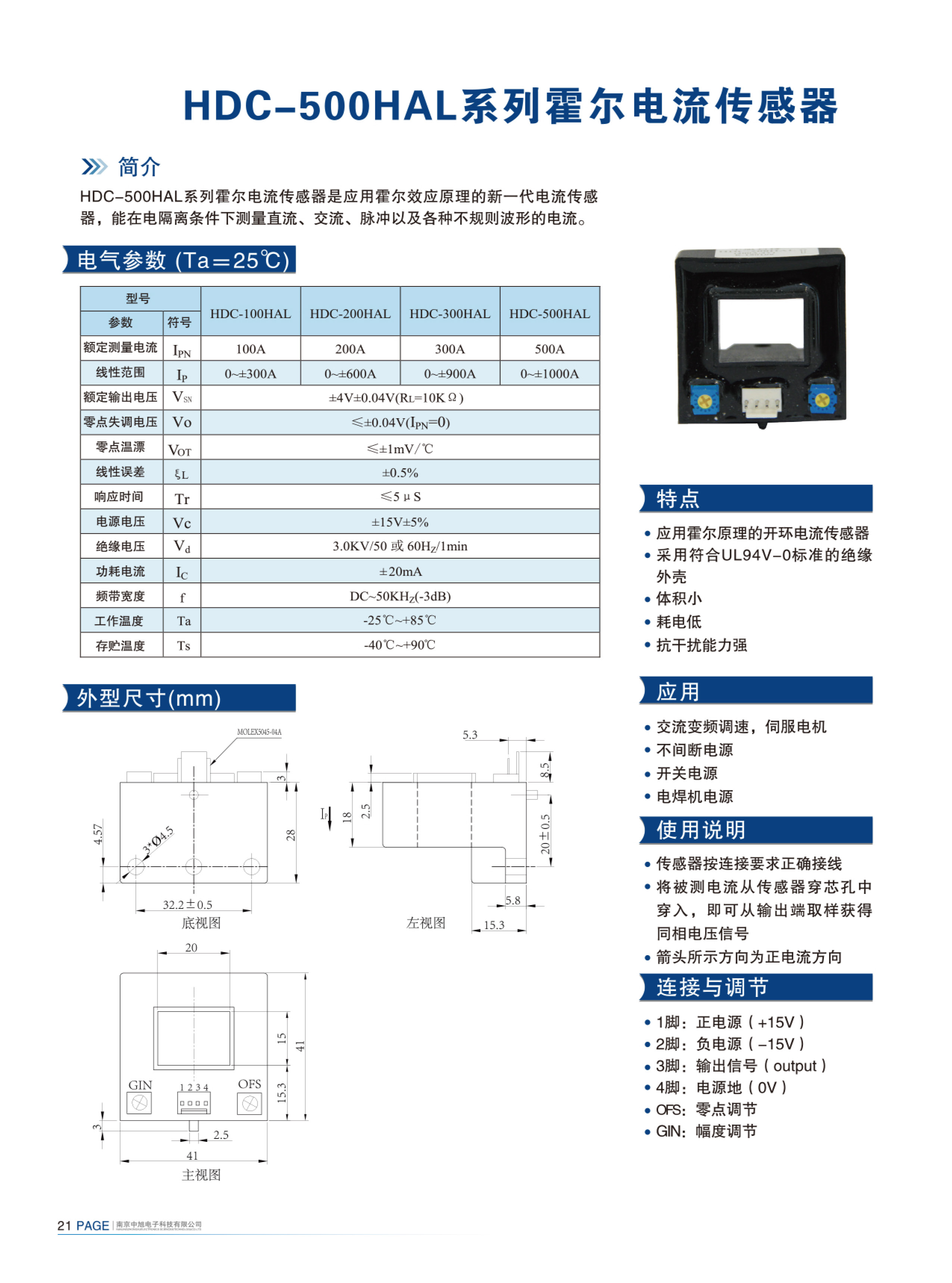 HDC-500HAL系列霍爾電流傳感器是應用霍爾效應原理的新一代電流傳感器,能在電隔離條件下測量直流、交流、脈沖以及各種不規(guī)則波形的電流。